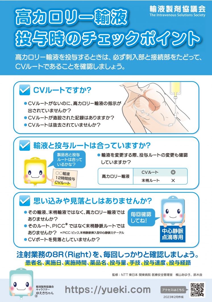 高カロリー輸液を誤って末梢静脈から投与してしまい、血管痛・静脈炎などを起こした事例があります。