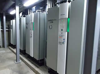 小型ボイラーを複数台設置することにより、蒸気の使用量に応じて必要な台数を稼働すること(台数制御)により省エネしています。